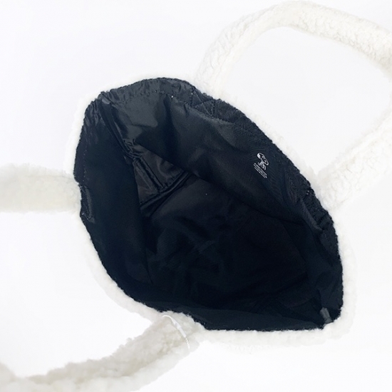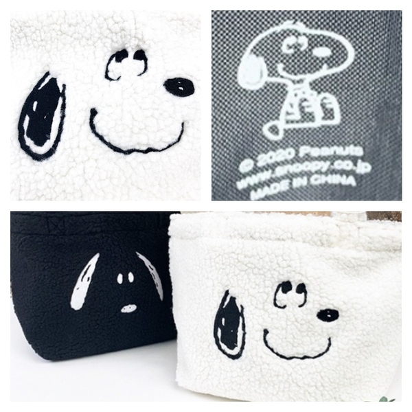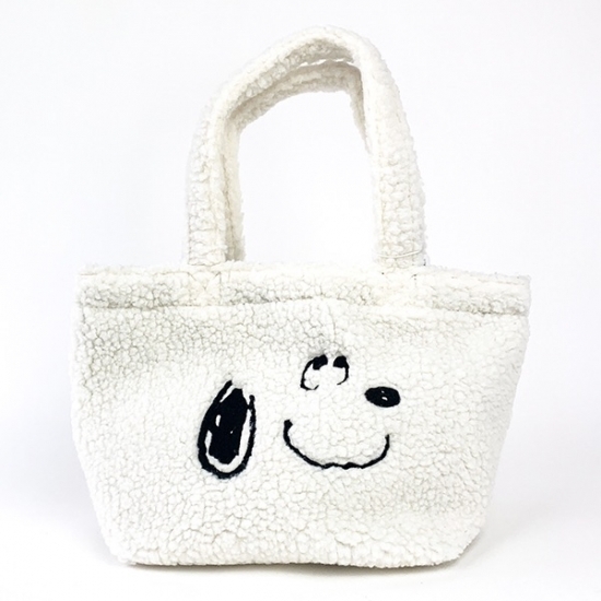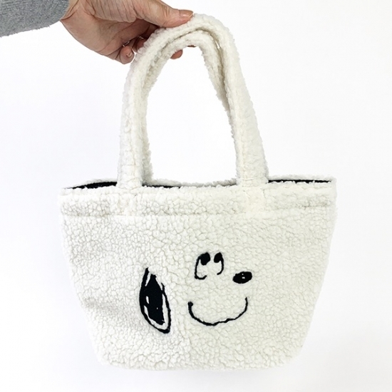スヌーピーのお顔のデザインがとっても可愛くて何といってももこもこのボアがオシャレ♪お弁当箱や水筒がすっぽり入るのでランチバッグとしてもお使いいただけますし、ちょうどいいサイズのバッグなのでお出かけやお買い物の時にとても便利です◎肌触りもよく洋服も合わせやすいので、プレゼントにもピッタリです♪