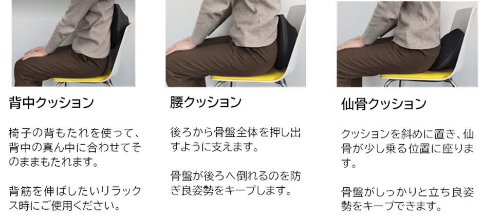 骨盤ストレッチ運動以外にも背もたれクッションとして使用可能です。