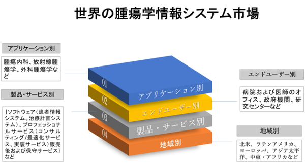 世界の腫瘍学情報システム市場は、アプリケーション別(腫瘍内科、放射線腫瘍学、外科腫瘍学)、製品およびサービス別{ソフトウェア(患者情報システム、治療計画システム)、プロフェッショナルサービス(コンサルティング/最適化サービス、実装サービス)販売後および保守サービス}、エンドユーザー別(病院および医師のオフィス、政府機関、研究センター)などによって分割されています。さらに、レポートは、各セグメントとそのサブセグメントの詳細な分析に焦点を当てています。