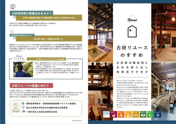 なお、古材の活用については、環境省・国土交通省・全国古民家再生協会が連携※することで、より国内で幅広く活用されるための取り組みが行われています。