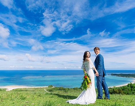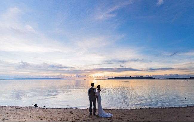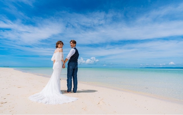 “星砂”で有名な白い砂浜、澄みわたる青い海など、南国リゾート好きにはたまらないロケーションで結婚写真が残せるプラン。