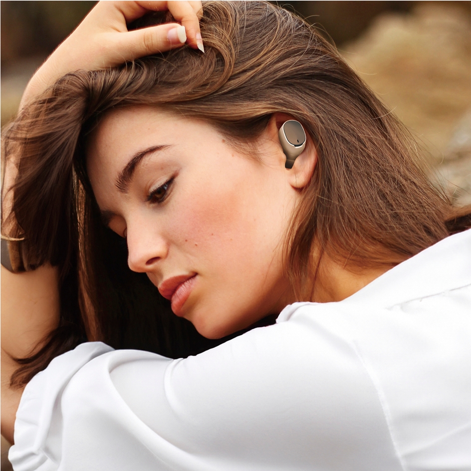シックな2トーンカラーにメタリック加工が施された高級感のあるデザインの完全ワイヤレス ステレオイヤホン カナルタイプです。