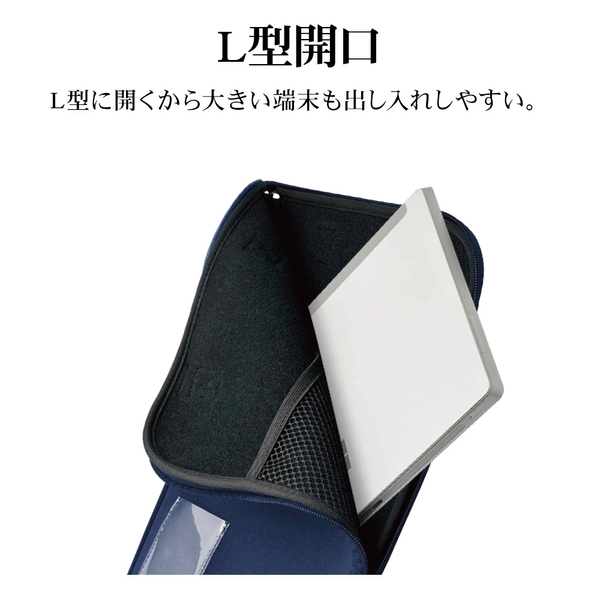 L形に開くから大きい端末も出し入れしやすい。