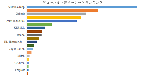LP Informationのトップ企業研究センターによると、バルコニー排水口の世界的な主要製造業者には、Aliaxis Group、ACO Group、Geberit、Watts (Blucher, Josam)、Zurn Industries、Vitas Group、KESSEL、Alca Group、Jomoo、Wiedemannなどが含まれている。2024年、世界のトップ5企業は売上の観点から約20.0%の市場シェアを持っていた。