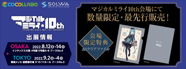 本商品は8月に大阪、9月に東京で開催される「マジカルミライ10th」 COCOLLABO&SOLWAブースにて数量限定、最先行販売を行います。