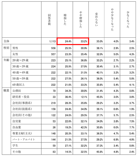 ・直近でスマホ決済の利用頻度が「増加した」「やや増加した」との回答が合計で57.6%と、過半を占める結果【Q1】