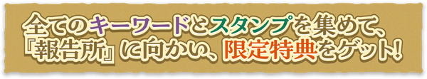すべてのキーワードとスタンプを集めて「報告所」へ行くと特典がもらえます。