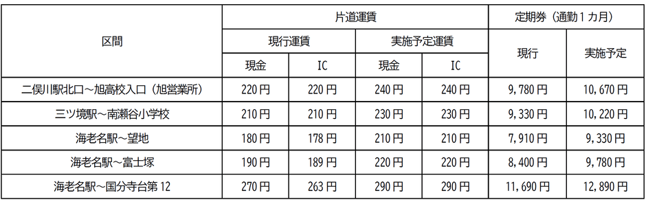 ・横浜新道を走行する系統に対しては、他に有料道路割増運賃(最大40円)を設定
