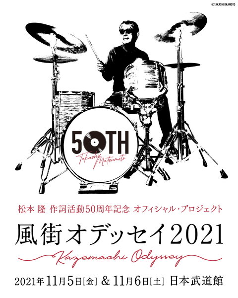 半世紀という大きな節目である作詞活動50周年を迎えた松本 隆。50周年のオフィシャルプロジェクトの集大成と言えるコンサート「風街オデッセイ2021」が、11月5日(金)・6日(土)の2日間にわたって開催される。会場は、ザ・ビートルズの初来日から55年を迎えた音楽の聖地・日本武道館。