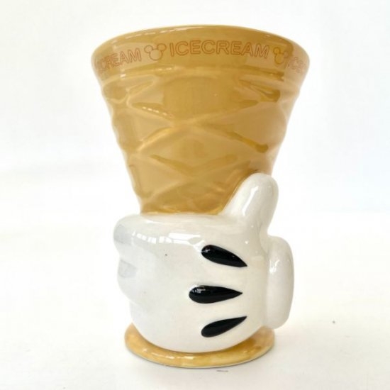 アイスクリームのコーンのようなこちらは食器です。ミッキーの手がアイスのコーンを持っているデザインでコーンを使わずとも、お店で買ったような風景が再現できます。これはかなり画期的ですよね♪
