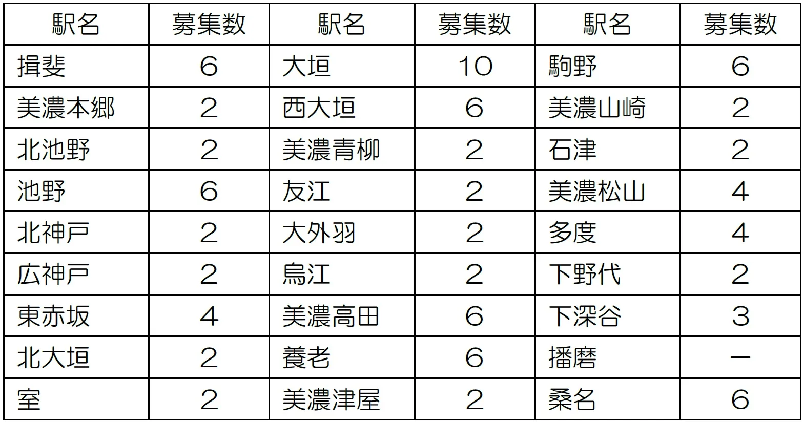 各駅の募集数