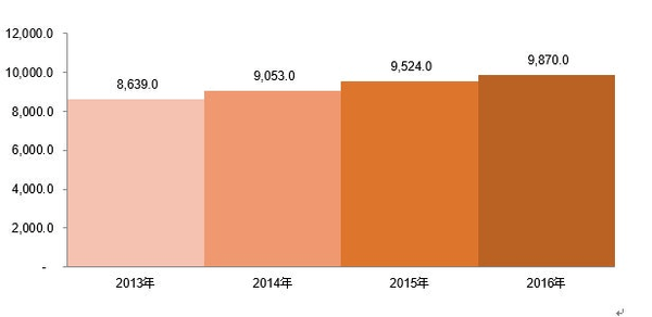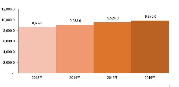 一人当たりの米国医療費、(USD)、2013ー2016年