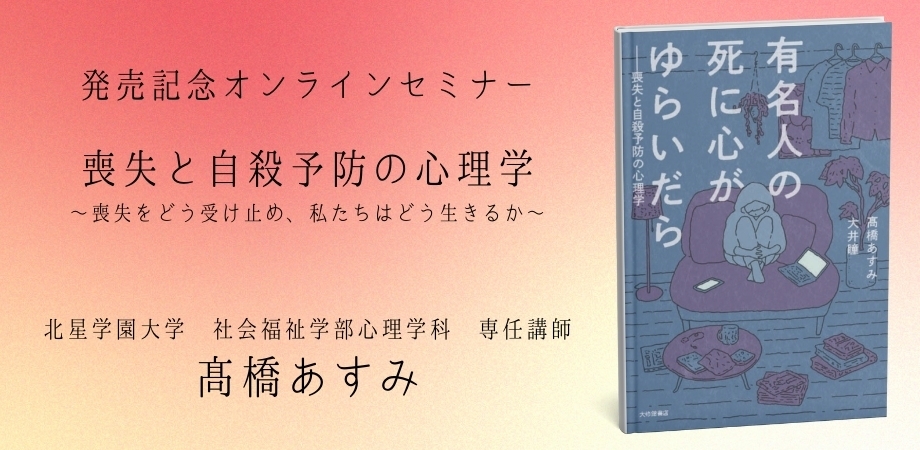 【今夜開催】オンラインセミナー『有名人の死に心がゆらいだら――喪失と自殺予防の心理学』発売記念オンラインセミナー〜パラソーシャルなつながりと喪失へのアプローチを開催します