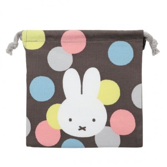 巾着はシックなブラウンで、ピンクやブルーのドット柄がガーリーです♪