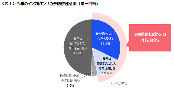 2人に1人は「インフルエンザの予防接種受ける」 昨年受けなかった人もコロナで予防意識高まる