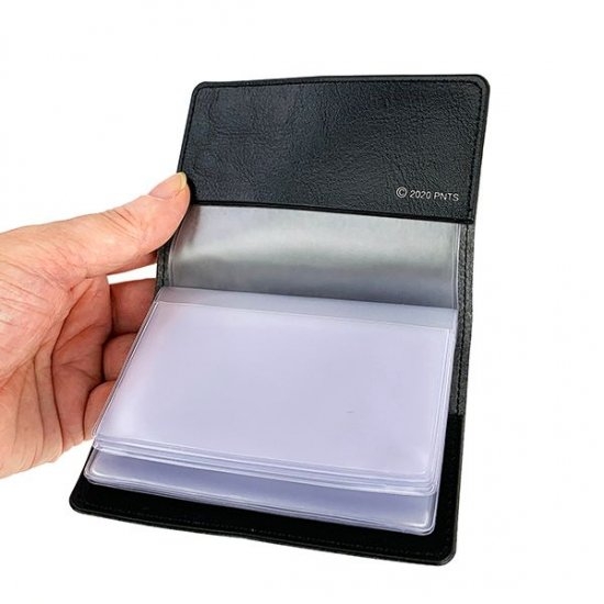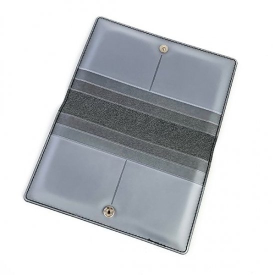 中はクリアポケットになっているので、見やすいのもポイントです。ボタンで留められるので安心ですね。