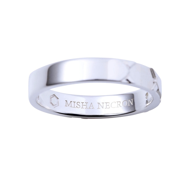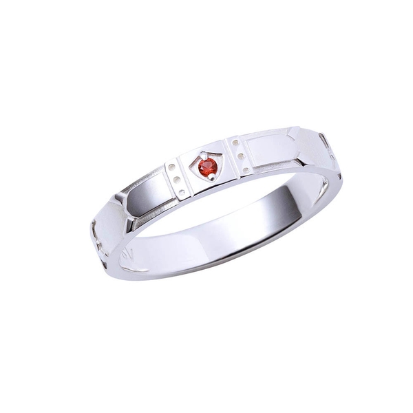TVアニメ「魔王学院の不適合者」に登場するミーシャ・ネクロンをイメージしたリングです。表面は魔王学院の制服を取り込み、イメージカラーストーンをセット。内側にはミーシャの校章と名前刻印を施しました。ユニセックスに身につけられる、平打ちフォルムのデザインです。