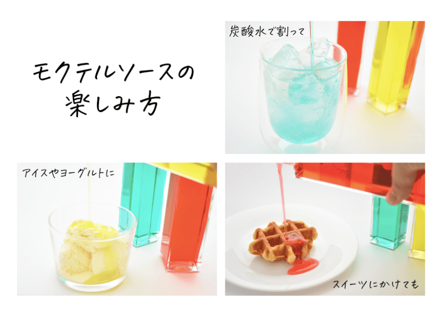 「世界一おもしろいお菓子屋さん」アート・キャンディ・ショップ「PAPABUBBLE/パパブブレ」は、おうちで手軽にリゾートやバーの気分が楽しめる「モクテルソース」を開発しました。フルーティーなキャンディの製造で培ったノウハウを結集したフルーツ味のソースです。炭酸で割って、お子様から年配の方まで、幅広く本格的なカクテルの味が楽しめます。また、通常のフルーツソースのように、バニラアイスやヨーグルト、食パンにトッピングするのもおすすめです。