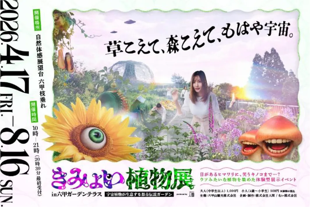 六甲山観光株式会社(本社:神戸市灘区 社長:妹尾昭孝)は、自然体感展望台 六甲枝垂れ(設計者:三分一博志)にて4月17日(金)から開催する「きみょい植物展in六甲ガーデンテラス ~宇宙植物が生息する都市伝説ガーデン~」の特設サイトを本日公開し、WEBチケットを発売いたします。