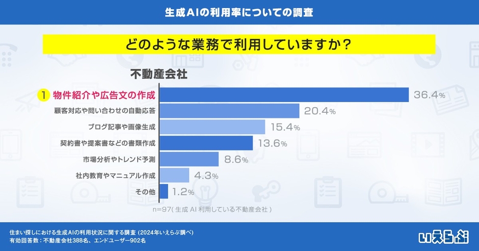3.不動産会社の生成AI活用ランキング 1位は「物件紹介や広告文の作成」(36.4%)