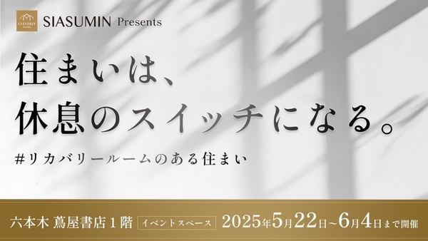 全国で注文住宅ブランドを展開する株式会社クレバリーホーム(本社:千葉県君津市、代表取締役:松田芳輝)は、2025年5月22日(木)〜6月4日(水)までの期間、六本木 蔦屋書店にて「リカバリーホーム」をテーマとした体験イベントを開催いたします。