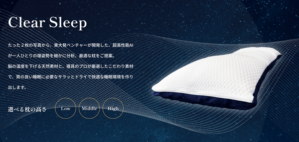 AIが写真2枚から最適な枕の高さと形状を導き出すオーダーメイド枕。高品質な睡眠で日中のパフォーマンス向上をサポート。