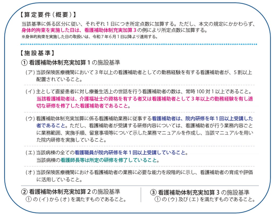 することとなりました。療養生活上の世話を実施する看護補助者が看護チームの一員として活