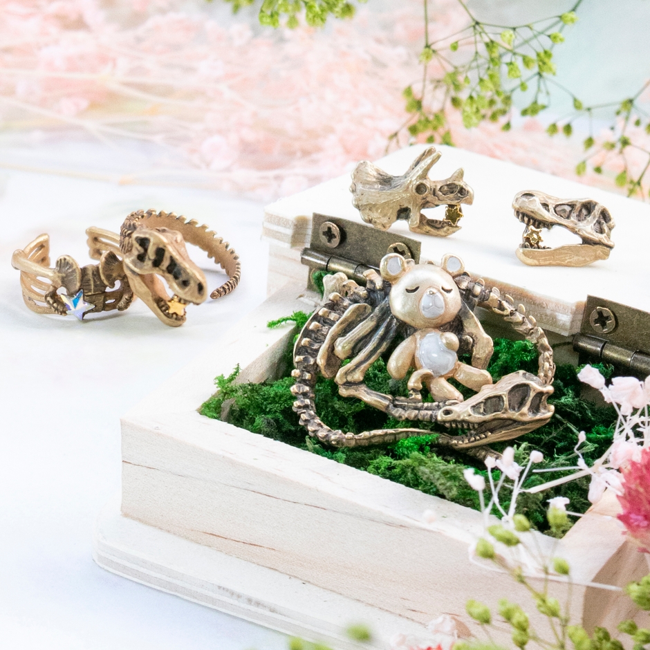 白亜紀の恐竜たちの化石をモチーフにしたアクセサリー。