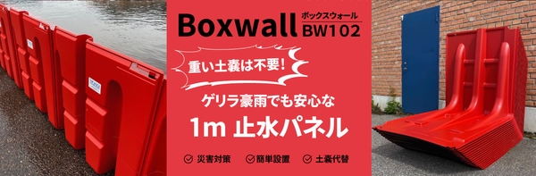 ゲリラ豪雨や台風などの水害から資産を守る防災商品として「Boxwall(ボックスウォール)BW102」をご活用ください。