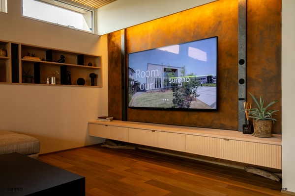 幅約9cm、厚みわずか4cmの超薄型設計(特許出願中)により、スクリーンの真横に設置可能。プロジェクター本体からの再生で起こりがちな「音の発生位置と映像位置の違和感」を解消し、没入感の高いホームシアター環境を提供します。