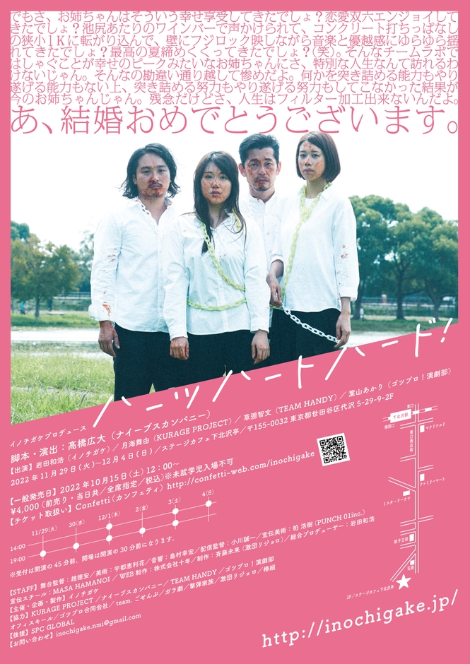 若手脚本家、演出家、キャストを起用した新作公演 イノチガケプロデュース『ハーツ・ハート・ハード!』上演決定 カンフェティでチケット発売