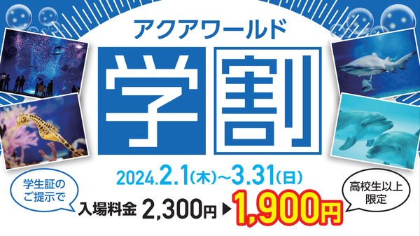 アクアワールド・大洗が学生の思い出作りを全力応援! 期間限定キャンペーン『アクアワールド学割』 2月1日(木)から今年もスタート!