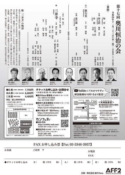 奥川恒治の会は観世流シテ方能楽師・奥川恒治主催の能楽公演です。