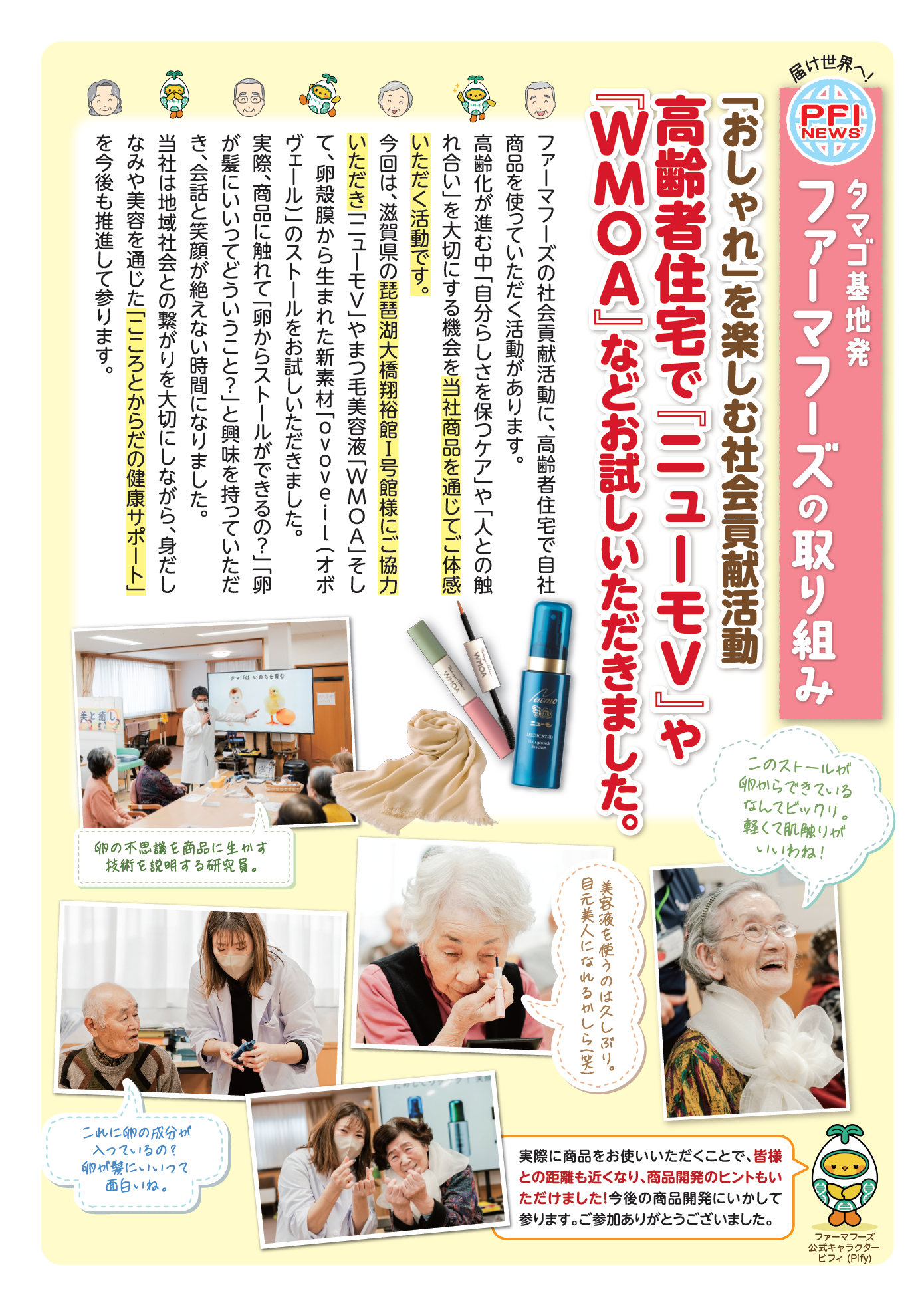 株式会社ファーマフーズ(本社:京都市西京区、代表取締役:金武祚)は、地域貢献活動の一環として、滋賀県大津市の高齢者施設にて、当社製品を用いた身だしなみケアのレクリエーションを実施いたしました。
