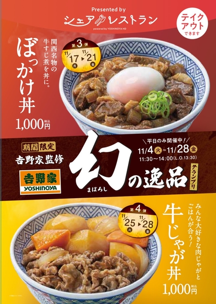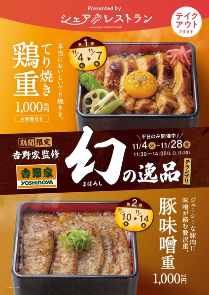 飲食店開業支援プラットフォーム「シェアレストラン」を運営する株式会社シェアレストラン(代表取締役:武重準、本社:東京都中央区)は、「シェアレストラン」を利用した吉野家監修イベント「幻の逸品グランプリ」が2025年11月4日に開幕した事を報告します。