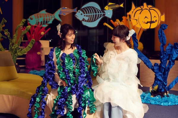 ウニやクマノミ、タツノオトシゴなどの海のいきものに加え、マーメイド、ウロコやワカメをモチーフにしたドレスなど計13種の仮装グッズを用意します。今回は乳幼児も楽しめるよう、ベビーカーや抱っこひもに装着できるグッズが登場します。子どもから大人まで海のいきものになりきって過ごすことが可能です。