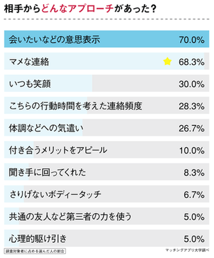 自分からして有効だったと思うアプローチ1位は「マメな連絡」