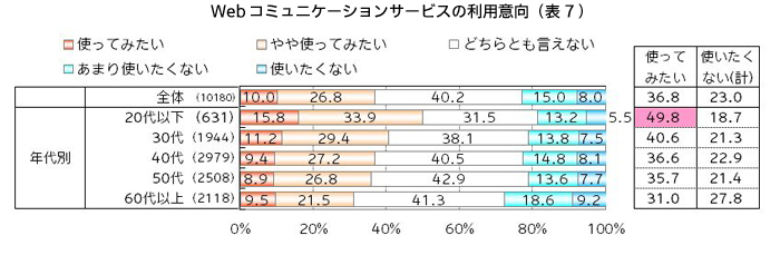 若い年代ほど、紙での利用が多い傾向にあった。また、Webコミュニケーションサービスの利用意向も年代が下がるにつれて高まる結果に