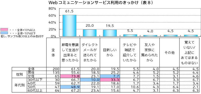 4. 現状のWebコミュニケーションサービスの利用のきっかけは「節電を意識して生活が出来ると思ったから」
