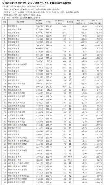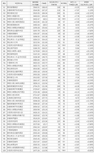 「マンションレビュー」2021年12月 全国市区町村 中古マンション価格ランキング100を発表