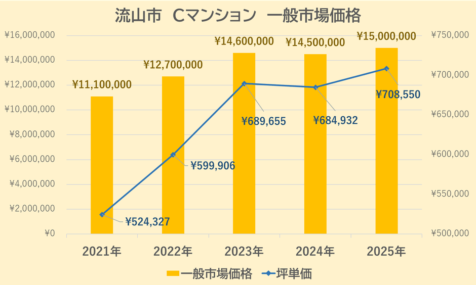 Cマンションの一般市場価格・坪単価の推移は上記【図5】の通りです。