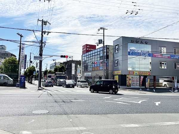 ➀東加古川駅南口より出て国道2号線の東加古川駅前の信号に向かって直進します。