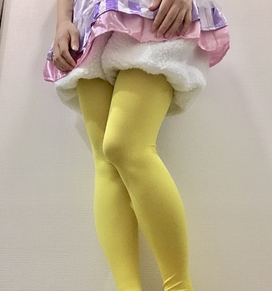 黄色のタイツも付いていて、紫のワンピースとマッチしています。