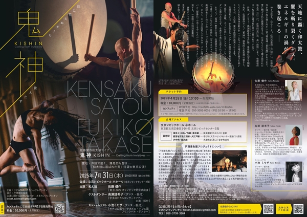 昨年、ダンサー・髙瀬譜希子(たかせふきこ)を戸隠・是色館に迎えて開催された、佐藤健作ライブ「鬼神」。爆発的な和太鼓の響きと、たぐいまれな身体の動きが一つになって大喝采を受けた熱いライブが、この夏、東京で待望の再演となります。