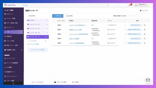 株式会社ミショナが開発・提供するInstagram(インスタ)分析システム「エルグラム」の管理画面のレイアウトを刷新。 フォルダ管理・募集期間・最終更新日・ユーザー情報などが見やすくなり作業効率が向上。