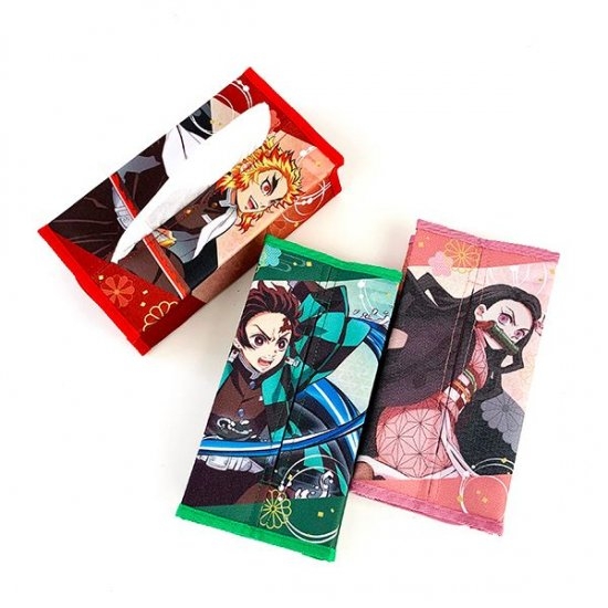 ということで、高いモチベーションで今日はますます人気の鬼滅の刃から、ボックスティッシュのカバーが登場しました!炭治郎・禰豆子・そして煉獄さんのキャラクターがデザインされた、布製のカバーです。身の回りにいつも置いておけるので、鬼滅の刃気分がアガりますね♪