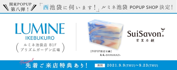 株式会社コーカス(沖縄県那覇市首里末吉町、代表取締役社長 緒方教介)は、沖縄県内に13店舗を展開するスキンケアブランド「SuiSavon首里石鹸」のPOPUPSHOPを、2021年9月9日(木)~9月23日(木)の間、オープンいたします。