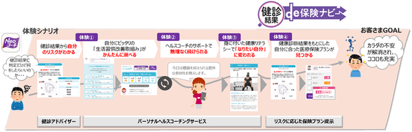 「健診結果de保険ナビ(自分の健康診断結果に合わせた医療保険プランを提案する機能)」についても