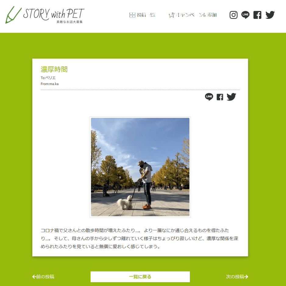 「濃厚時間」。ペットとの絆を語ろう。1投稿500円が寄付になり保護犬猫が救われます