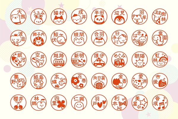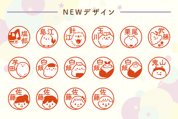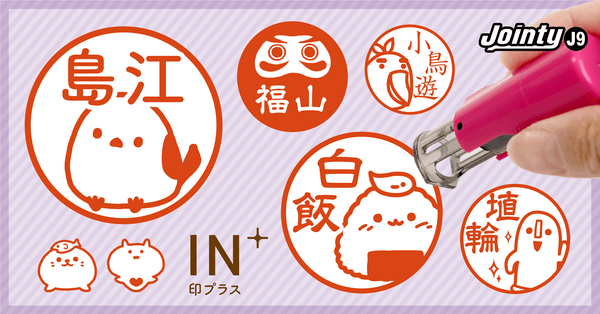 個性的なイラスト入りネーム印「印プラス」は、10シリーズ、全141デザインをラインアップ。